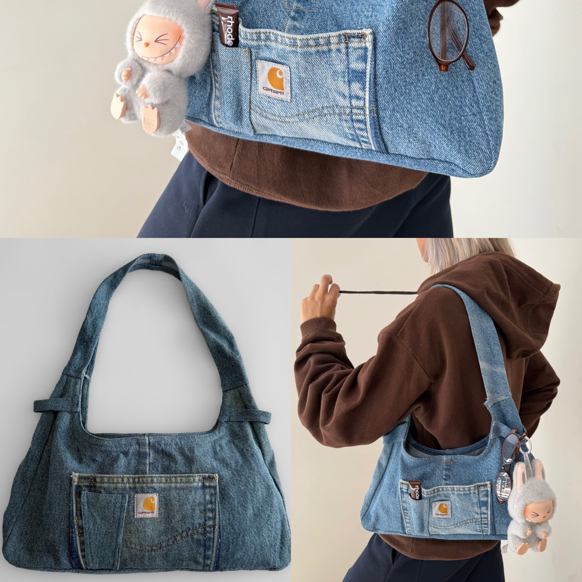 Reworked Carhartt Jackie in Blue Denim. Hand Made from 100% Original Carhartt Materials. This Bag Features: